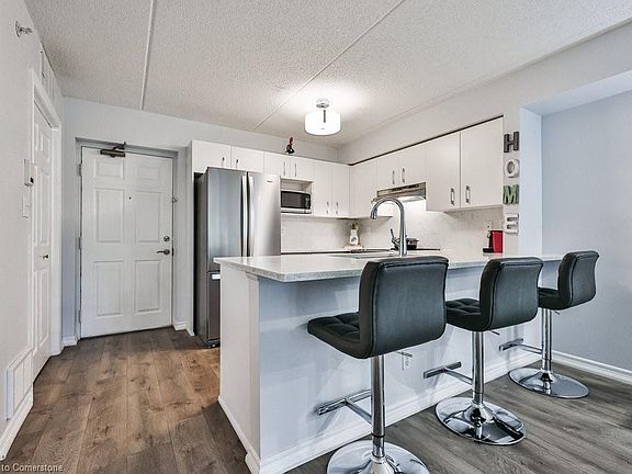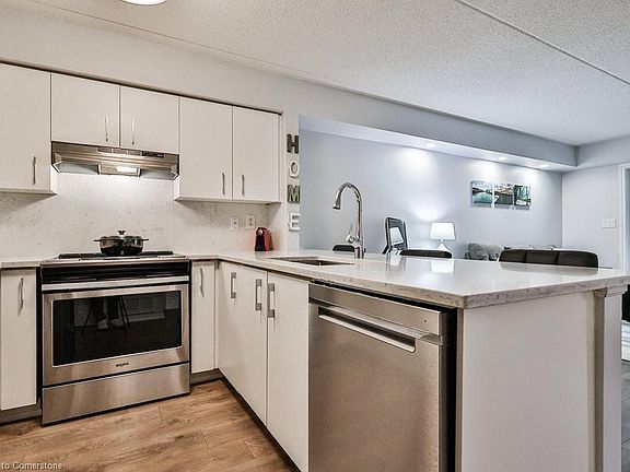 Glen Abbey Ground Floor Condo. With Private Entry/Walkout To Patio. Carpet-Free, Open Concept Living With LED Accent Pot Lighting. Combined With Area For Dining. Functional Eat-In Kitchen With An Oversized Breakfast Bar, Caesarstone Counters & Backsplash. Ideal For Entertaining! Walk-In Utility Storage In Foyer. Laminate Flooring Throughout, Stainless Steel Appliances, Upgraded Bathroom Vanity, Vanity Mirror. Primary Ensuite With Double Door Closet & Large Window Facing Front Gardens/Mature Trees. Conveniently Step Out With Pets, Guests, Groceries. In-Suite Laundry. 1 Underground Parking. Clubhouse Amenities Include: Gym, Sauna, Party Room, Car Wash.