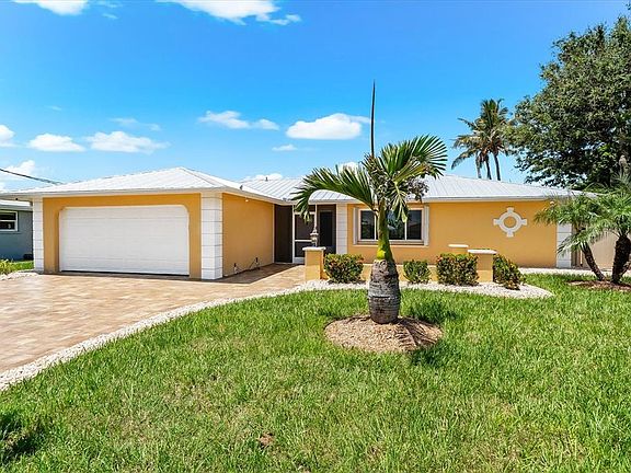 Direct access to the Intracoastal Waterway! Welcome to the laid-back coastal lifestyle in the peaceful and charming community of Point of Pines, a small enclave of just 66 homes with direct access to the Intracoastal Waterway and no bridges to the Gulf. This beautifully remodeled 3-bedroom, 2-bath, 2-car garage home was rebuilt from the drywall in, featuring IMPACT WINDOW AND DOORS, a METAL ROOF, and stunning tile flooring throughout for easy coastal living. Designed for relaxation and entertaining, the home offers a HEATED POOL (2018), an expansive screened lanai, an outdoor shower, and plenty of space for gatherings under the tropical sun. Step outside to a lushly landscaped courtyard featuring a charming Torii gate crafted from reclaimed Kentucky chestnut. To a covered open-sided boat house with davits and a CONCRETE SEAWALL, where you can fish right from your backyard or enjoy the manatees and dolphins swim by. The waterway leads through miles of stunning Intracoastal beauty and is just minutes to Stump Pass and the open Gulf of Mexico, making this a true boater’s paradise. Every finish in this home reflects thoughtful craftsmanship, from the high-end details like stainless steel appliances, upgraded faucets —including a kitchen sink faucet with pot filler —and gorgeous quartz countertops, to soft-close cabinets, coastal fans, custom closets, and stunning bathrooms. The split floor plan is perfect for guests, with a door for privacy, while the primary is across the home and offers a gorgeous bathroom with custom cabinets, a custom walk-in closet, and sliders to the pool. A paver driveway, irrigation system, and lush tropical landscaping add curb appeal and ease of maintenance. With its SOUTHWESTERN EXPOSURE, you’ll enjoy breathtaking sunsets over the water every evening and gorgeous sunrises over the bay from your front patio, where you'll enjoy coffee—the perfect backdrop for your Florida lifestyle. Minutes away, you’ll find Historic Dearborn Street with its weekly farmers market, local dining, and charm of Old Englewood, plus the soft sands of Englewood Beach and Manasota Key just a short drive away. Welcome to the Salt Life, where every day feels like a getaway.