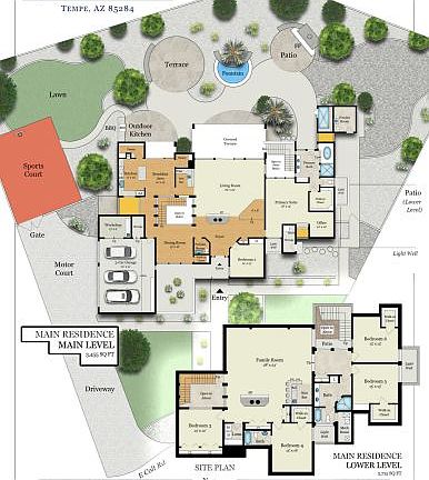 Gorgeous contemporary basement home on a giant corner lot in the highly desirable Warner Estates subdivision w NO HOA awaits its next loving owner. Incredible curb appeal w turf and immaculately kept desert foliage, mature shade trees, and private front courtyard w brick pavers. Inside is open and spacious w soaring vaulted ceilings, giant picture windows, and skylights let natural light flow throughout. Enormous formal living room has corner wetbar w built-in wine fridge and wine rack, fireplace for the cool months, and sliding glass door and glass panel window wall that looks out to lush green back patio. Kitchen features recessed and pendant lighting, granite counter tops w granite backsplash up to cabinets, center island, stainless steel appliances including built-in double oven, tons of cabinet space