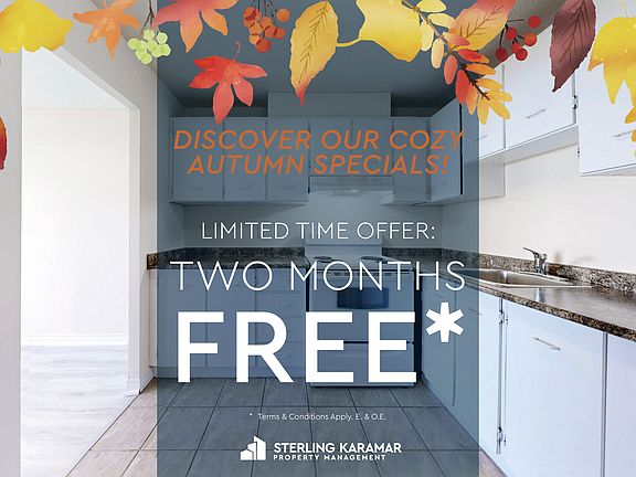 - Special offer! Limited Time Offer | 2 Months FREE on a 14 Months Lease!* - Limited Time Offer | 2 Months FREE on a 14 Months Lease!* *Pricing, availability, and incentives are subject to change. Conditions apply. Suite features may vary. Images and virtual tours may not reflect actual suite finishes. E. & O.E.