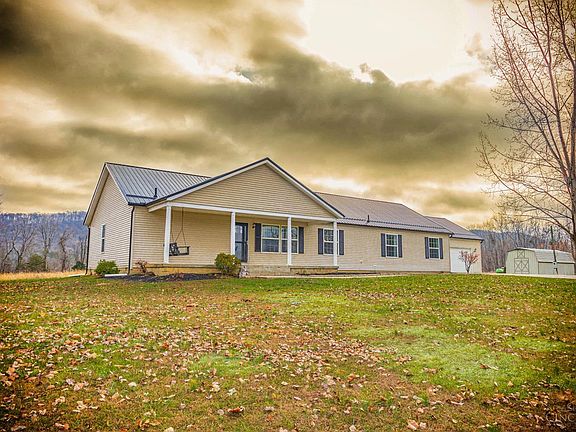 Private 5.5-acre retreat bordering Nature Conservancy land. This 4-bedroom, 3-bath home offers approx. 2,356 sq. ft. of living space with an open-concept layout. The primary suite includes an adjoining bath with shower, garden tub, double vanities, large walk-in closet, and an additional room perfect for an office or sitting area. Spacious living room with fireplace, kitchen with wood cabinetry and large island, plus a separate dining room. Enjoy outdoor living with a covered front porch, large covered back deck, and an above-ground pool. Property includes an attached garage and two outbuildings for storage. Ideal for families and nature lovers, and conveniently located near Buzzard's Roost and multiple walking trails. This private setting offers comfort, space, and beautiful natural surroundings.