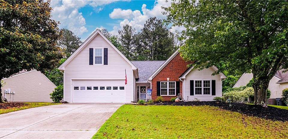 Step into this charming 1 1/2 story home with 3 bedrooms and 2 baths featuring a bonus room on top of the garage. Spacious family room with a beautiful white marbled gas fireplace to warm up and enjoy during chilly nights. Separate dining room that leads into the kitchen with tons of cabinet space and natural light. Updated floors throughout the house except for dining room scheduled to complete prior to closing. Primary suite boasts a generous layout with high ceilings and an ensuite bathroom with a soaking tub and separate shower. The backyard has a covered patio and fenced-in yard for privacy. HOA is voluntary with a pool, tennis and playground. No rent restrictions! An easy drive to Mall of GA, dining and shopping opportunities. You don’t want to miss this opportunity!