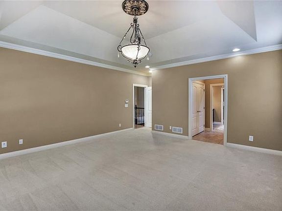 Stunning brick townhouse custom-built by Signature Homes. Spacious entry leads to open kitchen, dining room and living room. Travertine heated floors throughout main level. Chef's kitchen includes cherry cabinetry, professional stainless steel appliances, Uba tuba granite counters and more! Main level includes den (can be bedroom) with full bathroom plus laundry. Owner's suite with vaulted tray ceiling, three closets (one is a walk-in), heated floor, soaking tub, double vanity and walk-in shower. Family room offers corner gas log burning fireplace, vaulted ceiling & two Alabaster chandeliers plus access to the outdoor patio with awning. Upper level includes huge loft area with two closets plus two ensuite bedrooms. Fabulous finished lower level has game room, billiard room, wet bar, kitchenette, huge storage room (26x22) & full bathroom. Neutral finishes, crown molding, custom trim & lighting and recessed lighting throughout. Two-car finished garage with epoxy floor. MUCH MORE!