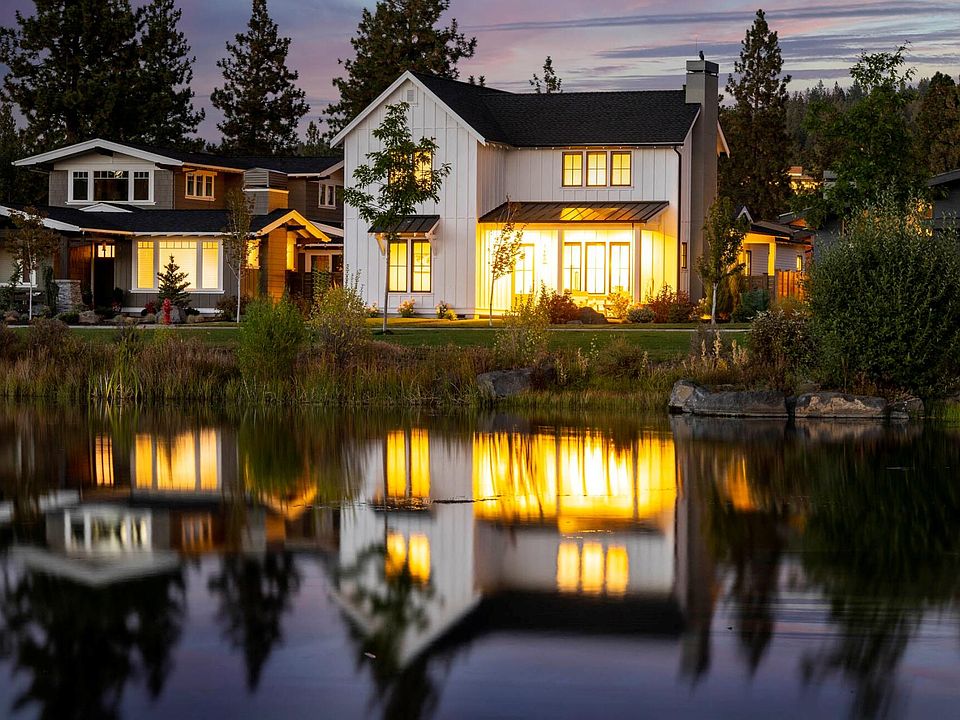 Dreamy modern farmhouse tucked along one of the most coveted streetscapes in all of Central Oregon, where runners and walkers enjoy a quiet loop around the serene lake and acres of grass in Northwest Crossing's Discovery Park. Here, detailed craftsmanship by Structure Development seamlessly melds authentic, well-planned design with warm farmhouse touches, including wooden beams, oil finished plank floors, farmhouse sink, and clean modern subway tile. At the heart of the home lies the great room and kitchen, as well as access to the patio for cooking, dining, and entertaining in all seasons. The main level accommodates a sweeping master suite with walk-in shower and closet, radiant heat flooring & soaking tub, with additional main level guest suite. Two bedrooms and a bonus room on the second floor provide great views of the park and the lake. Just blocks away from NW Crossing Community, including trails, restaurants, schools, and more!