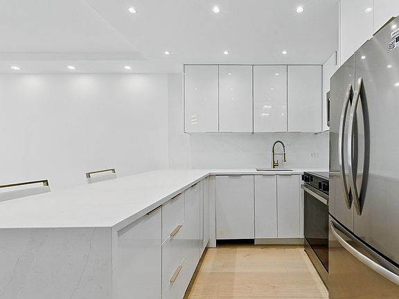 Be the first one to live in this modern luxurious south-west facing sun-drenched 1 bed / 1 bath unit with balcony at the highly desirable Alcott House in Chicago's GoldCoast/Old Town neighborhood. Completely gutt rehabbed, you are welcomed by wide-plank white oak floors and luxurious gold finishes throughout. The open kitchen has European high gloss cabinets, Premium appliances, a waterfall quartz island with breakfast bar, recessed lighting, and a full sized pantry. Bathroom has statement white marble / gold finishes, LED medicine cabinet, towel warmer and upgraded lighting. Wide plank white oak floors, updated electricals, new plumbing, designer lighting and professionally built-out custom closets throughout the unit. Extra large balcony with jaw dropping views of the skyline. Additional storage cage on ground floor included.