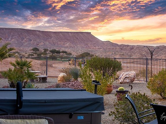 Discover one of the finest view lots in SCM, offering breathtaking, unobstructed north-facing vistas of the Virgin Mountains, Flat Top Mesa, and beyond. This beautifully maintained home is designed for both comfort and convenience, nestled within a sought-after Del Webb community. The private patio is perfect for relaxation, featuring a brand-new 6-person hot tub where you can soak in the stunning scenery. Inside, the spacious master suite includes a luxurious indoor sauna, creating a personal retreat. The office provides flexibility and can easily serve as a third bedroom. Recent upgrades include fresh exterior paint, as well as newly refinished surfaces on the garage floor, driveway, and walkway. The garage also boasts a 4-foot extension, ideal for a workshop or extra storage. Offered fully furnished, this home is truly turn-key and move-in ready. Plus, a one-year warranty on all major appliances is included for added peace of mind.