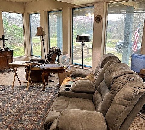 House is nestled off the road giving privacy to its residents. Large windows allow natural light and a beautiful view of the acreage. Lots of room for kids to play. After some updates this house offers a cozy home for your family or even an air bnb.