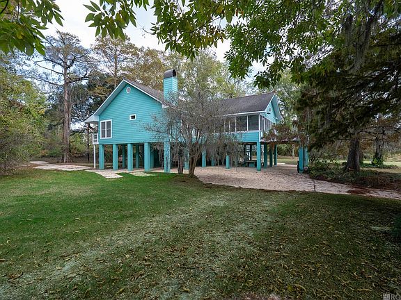 Paradise awaits you! This charming property is situated on a gorgeous lot with beautiful views of the Amite River. This property is well-kept, spacious with ample storage, and perfect for entertaining. Downstairs you will find a picnic table sitting area, a shower, and a sink- a great spot for those gatherings after a day on the river. The enclosed porch upstairs has four fans which will help cool you down on those hot summer days and help keep the mosquitoes away. The porch also connects to an open deck with lovely views of the river- perfect for sipping your coffee. Upon entering the home, you are welcomed with an open concept and gorgeous cedar wood floors and walls. The kitchen is the focal point and open to the dining room, the bar, and the living room. So much room for entertaining! The large primary bedroom has tons of natural lighting, views of the river, wood floors, and a trayed ceiling. The primary en suite comes complete with double sinks, a custom tiled walk-in shower, a water closet with a charming stained-glass window, a huge walk-in closet, access to the back porch with gorgeous views, and it connects to the utility room where you will find more storage. The second bedroom connects to the other bathroom that can also be accessed from the living room. The living area includes tons of natural light, views of the river, and a stunning fireplace. There are French doors leading to one of the two bonus rooms off the living room that open to the back balcony with spectacular nature views. This home really has so much to offer and the pictures do not do it justice. Make this private retreat yours and book your appointment today!