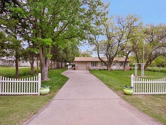 Enjoy this wonderful setting close to Goddard and close to West Wichita. there are 3 sheds. Her Shed is 16x15 His Shed is 14x10 The lawn equipment shed is 10x15. If your looking for a work shop I have it. The ranch home features a main floor famiyroom. 3 Bedrooms and 2 full bath. Partial basement for storms and storage. Bring the horse the chickens the duck,dogs and cats. Great place to live