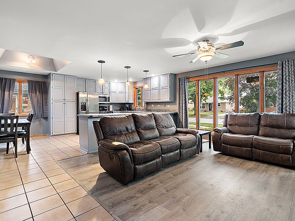 Welcome to this beautifully maintained and recently updated 3-bedroom, 2-bathroom mostly brick split level home, perfectly nestled on a quiet tree lined dead end street. Step inside and fall in love with the open-concept main level, where the bright and airy living room flows seamlessly into a modern eat-in kitchen. Enjoy stainless steel appliances, rich painted oak cabinetry, elegant countertops, a large island that comfortably seats 4, and a skylight over dining area-perfect for everyday living and entertaining. Upstairs, you'll find three generously sized bedrooms, all with ceiling fans, cozy carpet, and solid oak 6-panel doors. The updated full bath includes double sink, porcelain tile, relaxing whirlpool tub-your own private retreat. Downstairs, the oversized family room offers plush carpet, recessed lighting, and a fully updated bath featuring a custom walk-in tiled shower. A separate laundry/utility room, dry concrete crawl space, and convenient walk-out access to the backyard complete the lower level. Outside, the amenities continue with a 5-car concrete driveway leading to a heated 3.5-car garage-a true mechanic's dream or perfect workshop space. This home is move-in ready and loaded with quality upgrades throughout. Whether you're upsizing, downsizing, or relocating-this one checks all the boxes. Ideal location close to schools, restaurants & shopping. Don't miss your chance-schedule your showing today!