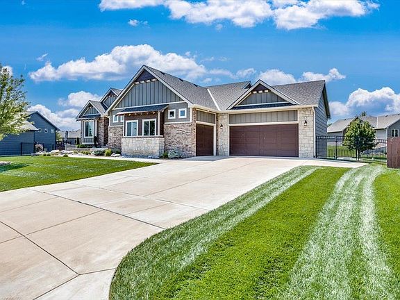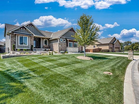 Looking for a beautiful home with a luxurious pool and hot tub? Enjoy this back yard oasis. Outdoor living is enhanced with a large 18' X 14' covered deck with stairs. The property is fully landscaped with sod, shrubs, and trees in the front, side, and back yards, and includes a water well and pump for yard irrigation, as well sprinkler system. This home, still like new, is situated on a spacious lot with a view-out basement, an oversize 3-car garage, and an attractive brick and stone facade with gabled rooflines. The kitchen boasts elegant granite and quartz countertops, tall cabinets with soft-close drawers and doors, and ceilings that soar at 9, 10, and 11 feet throughout the property. A gas fireplace adds warmth to the living area. The entryway is accented with a granite ledge on the half wall. The living room, entry hall, kitchen, and hallway to the bedrooms are all laid with luxury vinyl wood flooring. The home features enameled woodwork and custom 3-panel doors. The hall bath, utility room, and master bathroom are also fitted with luxury vinyl floors, while the master bath offers a large, tiled shower with dual shower heads and a frameless enclosure. The master closet includes seasonal closet rods. Vanities in the hall and master bath stand at a comfortable 36" height and crown molding in the master bedroom, which also features a lighted tray ceiling. The basement includes a finished rec room and hallway with carpet flooring, as well as 2 large bedrooms & bath. We welcome to your new future home.