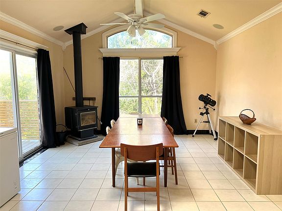 Have you ever imagined living in a light and airy treehouse by the lake? NOW is your CHANCE! This 3-bedroom 2 bath 1688 sq ft beauty is nestled in the trees on a hillside near Lake Travis with a large great room suspended over the hillside giving that true treehouse vibe. The convenient kitchen opens to the family/dining room as well as the great room. Enjoy the cozy warmth of the wood-burning stove in the fall or the fabulous cross breeze through the windows and sliding doors in the spring. Crown molding, hardwoods and tile, large deck and balcony, new roof, row-garden, are just some of the other incredible features.