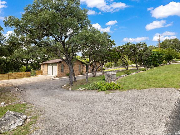 Welcome home to this charming 1970's residence in Helotes, where a perfect blend of old-world charm and modern conveniences await. Nestled on a spacious .86-acre lot adorned with magnificent mature trees, this home offers a truly tranquil retreat. Step inside and be greeted by a formal dining room area, ideal for hosting intimate gatherings or special occasions. The living room captures the essence of cozy comfort, featuring a double-sided wood-burning fireplace that elegantly connects to the family room. Adjacent to the family room, you'll find a warm and inviting kitchen with white refinished cabinets, electric with option for gas cooking and stainless steel appliances. The oversized island is the perfect centerpiece for family gatherings or casual meals. The owner's retreat is a delight in itself, featuring raised flooring, adding a touch of elegance to your personal space. Additionally, a 1970's Roman tub creating a spa-like atmosphere. Two equally-sized secondary bedrooms and a shared bathroom complete this charming residence, offering ample space for family members or guests. The great outdoors offer endless opportunities with .86 of an acre fenced all around and walkable. Perfect bbq's, relaxation or outdoor activities. Don't miss the opportunity to make this vintage gem your own, where the charm of the past meets the comforts of the present. Schedule your showing today and embrace a timeless lifestyle in Helotes.