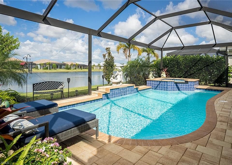 Great opportunity to purchase this stunning 3BR + Den /2B Pool Home in the amazing new gated community of Naples Reserve! Located on a prime Lake front lot/cul-de-sac in Egret Landing this home has a spectacular view. Only 2 years new take advantage of all the custom finishes from beautiful wood trim & mirrors, crown molding, even a one of a kind etched glass pantry door! Also with Egret being completed you are not living among construction trucks and dirt for the next few years...All your extras have been done, fans, lights, storm protection, even an A/C unit in the garage. The den may also be used as a 4th BR. Most important is what a FL lifestyle is all about...outdoor living on your cozy & spacious Lanai with outdoor kitchen, pool & spa. Additionally what sets NR apart from the others is the margaritaville feel amenities, beach entry pool & lap lane, poolside Tiki Bar with TV's to catch a game, Latitudes Cafe for lunch or dinner, Pickleball, tennis & gym. The Outrigger BLD hosts water activities from kayaks to paddle boats, pontoon bikes to an electric boat. And if you just want to relax hang out on comfy loungers out in the beach area and catch 1 of many magnificent sunsets!!