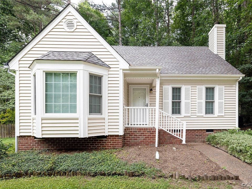 Adorable cape in the heart of Woodlake! You will absolutely fall in love with this cozy 3 bed 2 full bath home situated on a beautiful wooded lot! Step inside and you’re greeted by gorgeous hardwood floors that flow into the bright living room w/fireplace and screened porch access. The open concept dining room/kitchen are great spaces for family mealtime and entertaining friends and include tile countertops, a tile-topped island, bay window, access to the back deck and additional screened porch access. You’ll also find the primary bedroom complete w/a second bay window, full bath w/ tub/shower combo and large walk-in closet. Upstairs you will love all the space and possibilities offered by the two large bedrooms w/spacious closets and full bath. The backyard is a beautiful private oasis perfect for birdwatching and relaxing w/a deck and screened porch that invite you to partake of your morning coffee or glass of wine at the end of a long day. *New driveway, water tank 2023, ALL NEW WINDOWS, newer electric panel* Community amenities include common areas, clubhouse and water access. Located in Midlothian just minutes from Route 360 and w/endless choices for food and shopping!