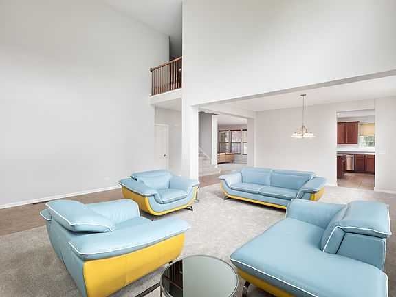 Quick Close Possible! Welcome to this beautifully updated home in the desirable Liberty Grove subdivision! Boasting an impressive 3,616 above grade square feet, this spacious 4-bedroom, 2.5-bath home offers a bright and open floor plan perfect for modern living. Recently refreshed in 2025, the entire interior has been freshly painted, and brand-new carpet has been installed on both the first and second floors. Step into the grand two-story foyer and living room, filled with oversized windows and an abundance of natural light. The open-concept kitchen features 42" cabinets, an island, and ample counter space-ideal for preparing meals and entertaining-while overlooking the expanded family room with soaring 10-foot ceilings, recessed lighting, and a stunning stone fireplace. The oversized primary suite offers a spa-like ensuite bath with a whirlpool tub, separate shower, and walk-in closet. Three additional generously sized bedrooms and a Jack-and-Jill bathroom complete the upper level. The home also includes a full, deep-pour unfinished basement ready for your finishing touches. Enjoy outdoor living on the brick paver patio-perfect for grilling or entertaining-and take advantage of the community pool. Additional highlights include a 3-car garage, 2020 water heater, sump and ejector pumps, radon mitigation system, and location within highly acclaimed District 202 schools with attendance at Plainfield North High School. Don't miss this incredible opportunity-schedule your tour today!