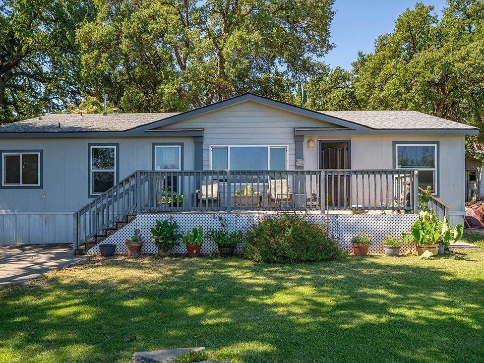 A well 2x6 constructed, Energy Efficient, 2003 manufactured on a permanent foundation, 3 bedrooms, 2 baths, 1,293 sq. ft. of living space on a spacious 1.04-acre lot with horse friendly zoning and RV parking with power hook up. Situated above HWY 36W with extensive views in a desirable and quiet neighborhood across from volunteer fire dept. Home offers vaulted ceilings, recessed lighting, a kitchen with ample storage space and a skylight filling the space with natural light. A new well pump and tank was added in 2023. Enjoy year-round comfort with ceiling fans and central A/C. The home includes a separate dining area and dedicated laundry room. The fire and weather-resistant Hardie Board exterior offers long-lasting protection and peace of mind. This property offers the freedom of rural living with the central of Red Bluff just minutes away.