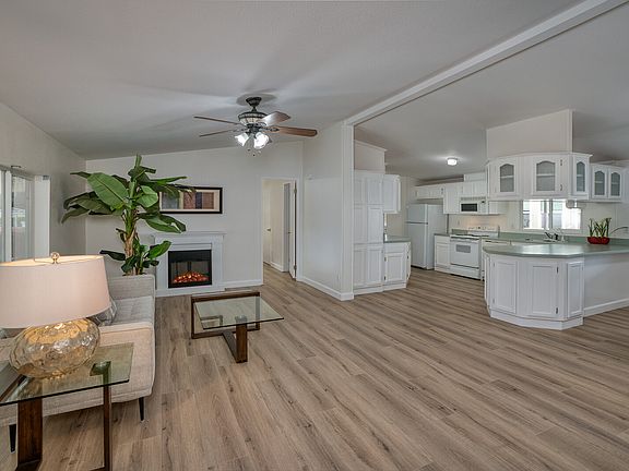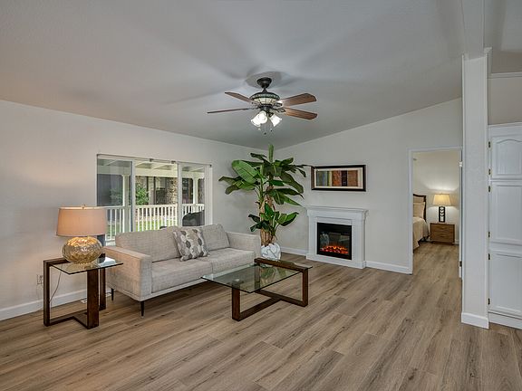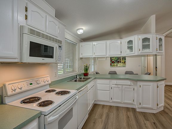 RANCHO MURIETA VILLAGE 55+ COMMUNITY - EXCEPTIONAL MANUFACTURED HOME. Partially Remodeled 1,352 sf home with 3 bedrooms, 2 baths, large covered deck & concrete patio. New designer interiors with extensive Luxury Vinyl Plank Flooring, fresh interior paint, white painted cabinetry. Great Room has vaulted ceiling, picture window & opens to dining area. Kitchen has stainless sink, Range, Microwave & dishwasher. Primary Ste has window & walk-in closet plus updated Bath has separate shower with seat. Fenced backyard & side yard has mature plants & views of greenbelt with shade trees. Sheds included. 2 car carport. Convenient location & parking next to clubhouse. Active community: seasonal events & many organized clubs. Great location only short walk to Clubhouse, pool & spa, 2 shopping centers, restaurants & Bel Air Market.