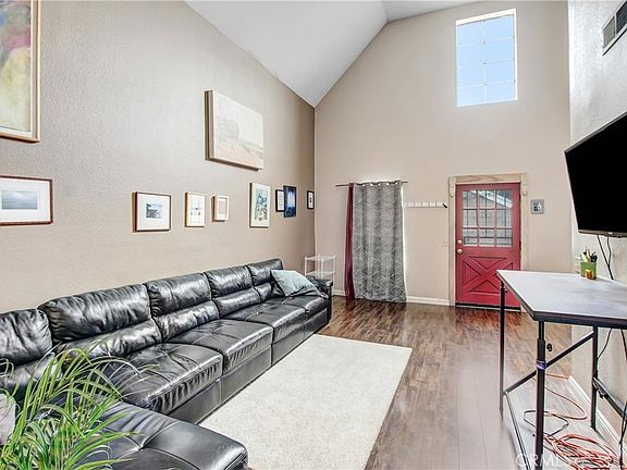 Make this sweet detached Cape Cod style cottage yours! Bright and open vaulted ceilings with an open floor plan. Primary bedroom upstairs, two bedrooms down. Laminate floors throughout the main level, carpet upstairs. Bathroom with granite countertops. Stainless appliances in kitchen, large windows and sliding glass door right off of kitchen to a spacious and fully fenced side and rear yard. Charming front yard with detached garage and convenient parking. House backs up to a Park/Greenbelt area with walking and biking trails.