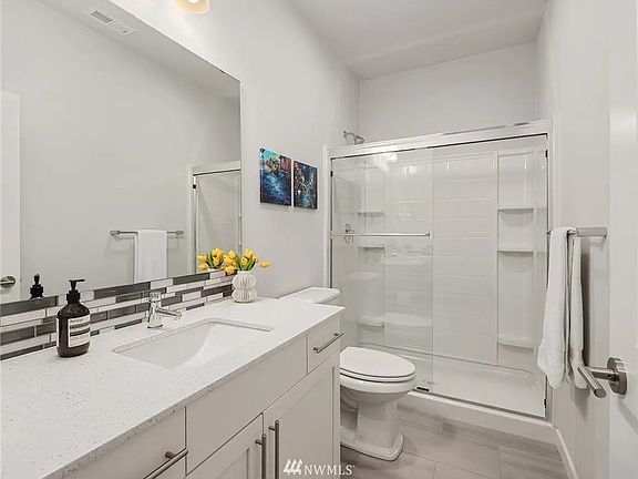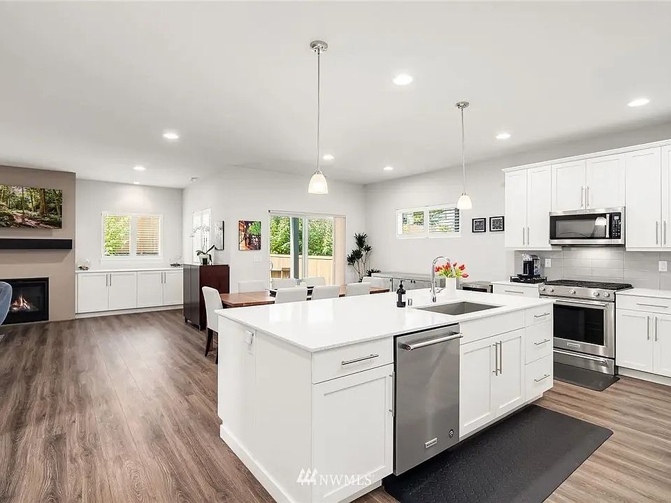 Significantly customized East Facing Home in Premium Neighborhood, this stylish, 2020 built craftsman will duly impress. Numerous upgrades, clean lines, sweeps of hardwood & light-filled spaces prevail, while the open floor plan offers easy modern living. An oversized great room with high ceilings & gas fireplace, entertaining 'cooks' kitchen, main floor bed & bath, and easy access to the covered patio & yard. Retreat upstairs to a family room with adjoining 'zoom' room, 4 spacious beds including a serene primary suite with 5 piece bath + custom walk-in closet. A 2 car garage, central A/C, high-end window treatments, and a newly installed & fully fenced turf yard complete the package. Minutes to I-5, 99, and plenty of shops & restaurants.