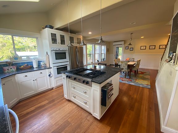 The home boasts a spacious and open floor plan, complete with a fully equipped chef's kitchen, a large adjoining dining room, and a living room. Beautiful Brazillian cherry wood floors throughout and carpeted bedrooms. The upstairs master suite has an adjoining sitting/viewing room with a flat-screen TV, a large master bath with a claw foot tub, shower, and walk-in closet. The other two downstairs bedrooms each have a queen-sized bed and reach-in closets.