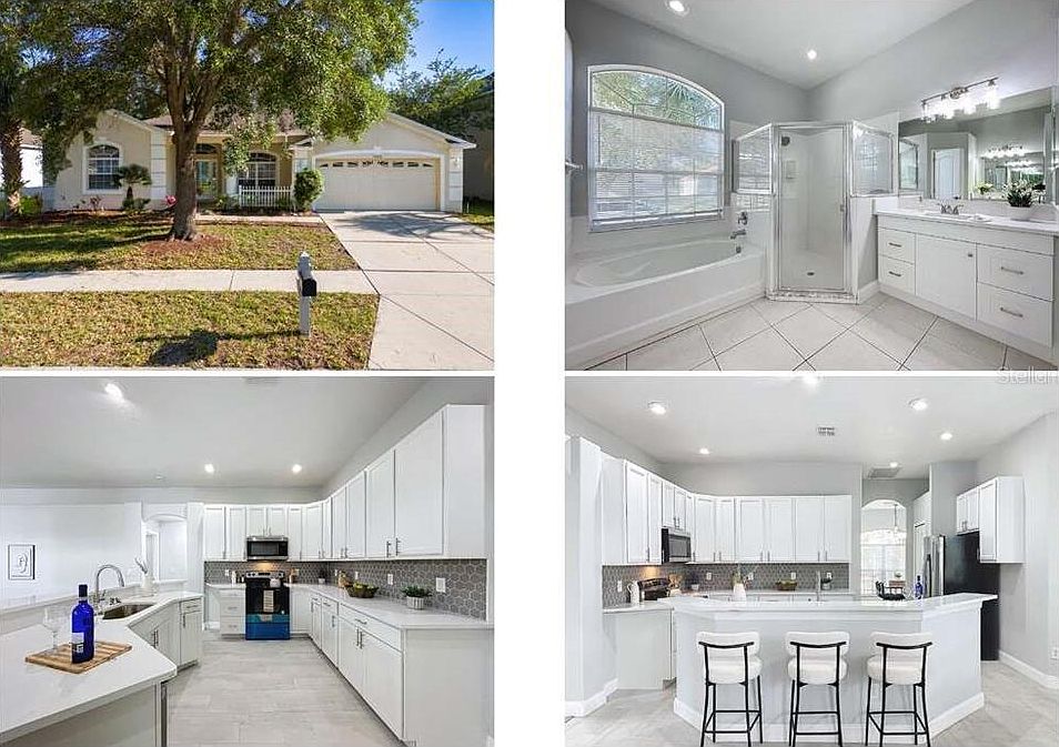 This exceptional home features a brand-new water heater installed this month, with a new roof set to be installed within days. Fresh sod will be laid in the coming weeks, and there’s an attractive $5,000 price reduction! Welcome to this breathtaking four-bedroom, three-bathroom residence that seamlessly combines elegance and practicality. The kitchen and bathrooms have been beautifully remodeled this year, while the entire interior has been freshly painted, creating a bright and modern atmosphere. One of the standout features of this home is the bonus office space connected to the master bedroom, providing a convenient and private workspace without sacrificing any additional bedrooms. The kitchen is truly a chef’s paradise, boasting luxurious quartz countertops that offer both beauty and durability, paired with brand-new appliances that make every cooking experience delightful. New flooring throughout the home adds warmth and style, enhancing the overall aesthetic. You’ll also love the expansive screened-in lanai, ideal for enjoying the outdoors in comfort and privacy. Plus, a two-car garage adds even more convenience, making this property a true gem for anyone seeking a perfect balance of beauty and functionality. Located in the Sterling Hill community, residents enjoy access to two clubhouses, each with its own dedicated community pool, including the adjacent Edgemere next to the north clubhouse. Additional amenities include basketball and tennis courts, a playground, RV storage, a dog park, a billiards room, and a state-of-the-art gym—all for a remarkably low yearly HOA fee of just $125!