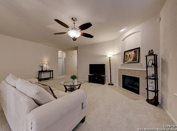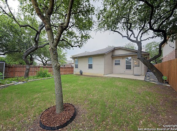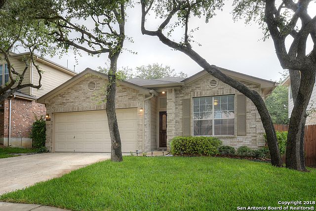 Great single story home. Roof replaced in two years, AC unit one year. 2 Bedroom Upfront, Master Suite in Back. Double Vanity Sink & Separate Tub & Shower, with Large Walk in Closet and Ceiling Fan. Large open Living/Family Room with Fireplace & Ceiling fan, 42'Cabinets with Window Seat, Black Appliances, 2'Faux Blinds, Water Softener. Nice Size Back yard with Gorgeous Trees. Close to many major employers: Valero, USAA, NuStar, UTSA, and Rim & La Cantera shopping. Excellent NISD schools.