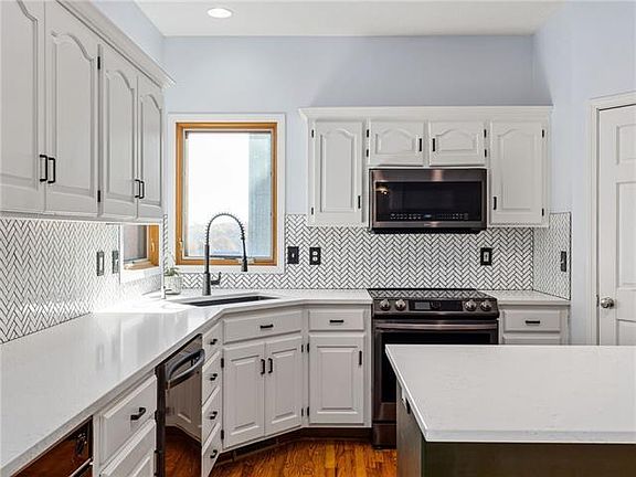 Conveniently located in South Smithville your new 2 story has been tastefully updated. Fresh exterior paint with black accents & crisp white trim is simply the beginning. Inside the foyer gives a welcoming first impression. Hardwood floors lead to the formal dinning room or living room that is open to the kitchen. Equally fabulous & functional your kitchen is updated with herringbone tile backsplash, quartz countertops & walk-in pantry. Oversized laundry room is located off the garage & has dedicated drop zone. Make your way upstairs to your bedroom level. Gorgeous master suite has a custom remodeled bath, walk-in shower, soaker tub & walk-in closet. Three additional bedrooms are oversized with one having additional finished attic space. The walk out basement adds a multipurpose living space large enough for you to decide what fits your lifestyle. With a fully finished bathroom, floor to ceilings windows & walkout to your covered stamped patio it might become the favorite part of your house. Minutes to Smithville Lake & 435 let us be the first to Welcome You Home!