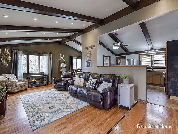 Updated Split level home with pool! Open main floor with vaulted ceilings and wood beams. Large kitchen with maple cabinets and stainless appliances and air fryer oven. Main bath updated in 2020 with double bowl sink and large walk in shower and updated lower level bath. 3 bedrooms, large family room, generous laundry room with additional cabinets. Fenced backyard made for entertaining with brick paver patio, gazebo and pool. New roof, gutters, siding and 2nd floor windows in 2018. New wood floors on 2nd floor 2021. Fence 2020