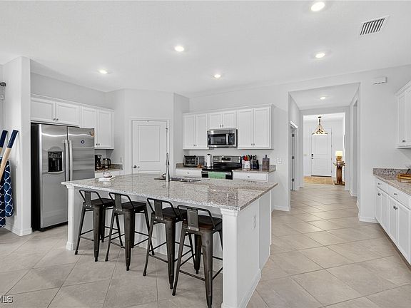 Welcome to 14608 Palamos Circle, a Marsala model in the gated community of Portico. This single-level home offers 3 bedrooms plus a den, 3 bathrooms, and a 2-car garage with a bright, open floor plan. The kitchen features modern cabinetry, stainless steel appliances, and plenty of storage, opening to the dining and living areas for easy entertaining. Pet friendly to small dogs with approval and pet fee.