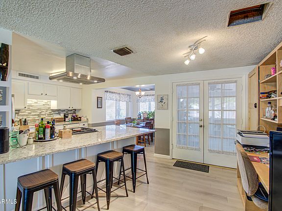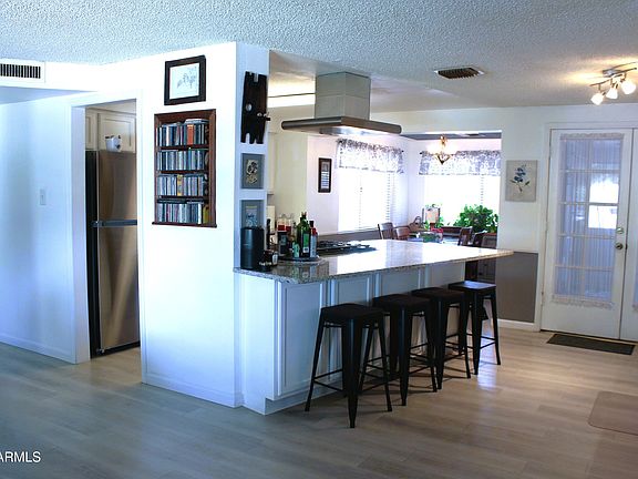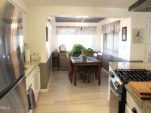 This well-maintained, 3-bed, 2 bath 1491 sq ft home sits on a spacious quarter-acre lot at the end of a quiet cul-de-sac, featuring an RV gate and RV parking for toys or business. No HOA. Inside, the home is warm and inviting with neutral colors, and a spacious living room. The kitchen has been fully remodeled, boasts granite countertops, built-in appliances, gas range, pantry, breakfast bar for casual breakfast bar dining, stylish tile backsplash and separate dining room. Built in desk for easy work from home or homework station. Master bath fully remodeled with walk in shower. Luxury wood plank LVT throughout installed in 2021. New A/C 2021. The large backyard is perfect for outdoor living including a covered patio with extended patio for family events and BBQ area. Mature shade trees provide ample protection the Arizona sun. Area offers A+ schools and parks. Irrigation front and back.
