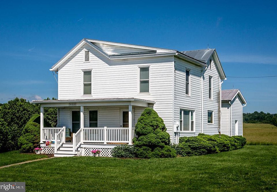If country living is what you are looking for, you have found it with this charming 2-story 1931 farmhouse that sits on 11.91 acres in 2 parcels just outside the town limits of Broadway! Relax on the covered front porch to watch the sunrise and chill in the back yard to watch the sun set behind the mountains! Main level features a spacious eat-in kitchen with wood cabinets, living room, den and full bath. Detailed wood staircase to upper-level hosting 4 spacious bedrooms and a full bath. Partial unfinished basement and attic fan. Step back in time with the charming summer kitchen with electric and waiting for you to turn it into a guest quarters, AirBnB or someone’s He or She Shed. 3-Bay detached garage can handle large vehicles. Level acreage with western mountain views. SOLD AS IS, WHERE IS.