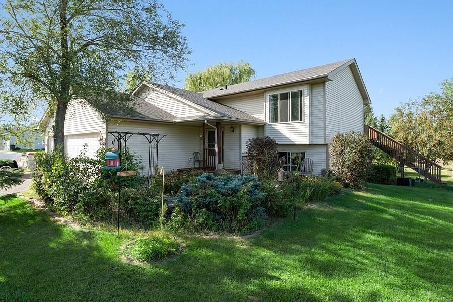 Beautiful home on 1+ acre lot. This three bedroom two bathroom home has been refinished with fresh paint and new flooring throughout most of the rooms. New kitchen cabinet doors with easy close drawers and newer kitchen stainless steel appliances. Entertain in the lower level family room and enjoy the built in bar area or walk out into the fenced in backyard with a patio, fire pit and a fun Rainbow playset that will be staying with the home. Relax on the deck or tinker in the insulated garage. Come take a look at this beautiful home!