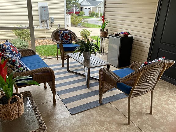 This a new, never lived in, Patio Villa. Furniture is brand new, purchased at City Furniture in The Villages. Kitchen is the largest of any patio villa models, perfectly appointed with everything the chef in your family could need, including a large LG refrigerator just purchased in July. There is also a brand new grill outside near a cute table with 4 chairs and an umbrella. You can enjoy your cocktails out here while your bbq master cooks.