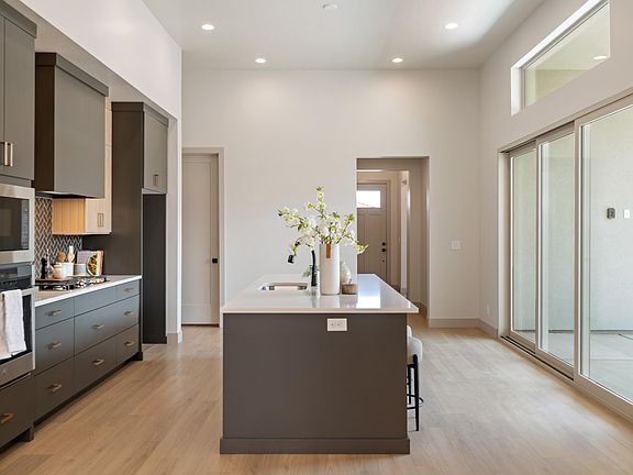 Discover the Mojave floor plan, a thoughtfully designed home offering 3 bedrooms and 2 bathrooms within 1,840 square feet of elegant living space. With tall ceilings and a spacious side patio just off the kitchen, this home maximizes your indoor and outdoor dining experience. The contemporary kitchen features optional gourmet enhancements, while the primary suite boasts a luxurious ensuite bathroom. Embrace the vibrant lifestyle in the Solis community, where resort-style amenities elevate your everyday living.