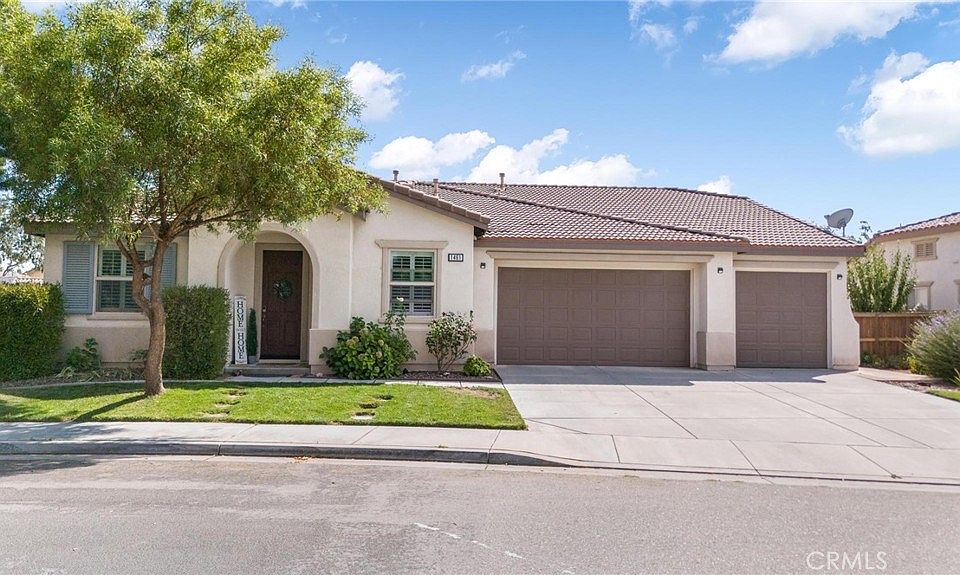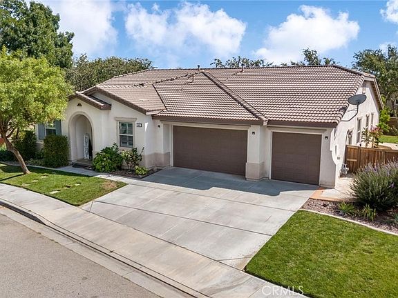 Beautifully upgraded single-story home offering 4 bedrooms, 3 bathrooms, plus an office that can easily serve as a 5th bedroom. From the moment you walk in, you’ll notice the vaulted ceilings, laminate flooring throughout, dual-pane windows, and custom shutters that bring in natural light and style. The spacious floor plan includes a large living area with sliding glass doors leading to the backyard, a kitchen with a double oven and ample storage, and a convenient indoor laundry room. The primary suite is a retreat of its own with direct patio access, a huge walk-in closet, and abundant storage. This home also features a 3-car garage with RV potential, providing plenty of parking and flexibility for toys or work vehicles. The backyard is designed for both enjoyment and function with a covered patio, two peach trees, one plum tree, and multiple citrus trees, all surrounded by colorful flowers in the front and back. Located in the desirable Sundance Community Association, this property offers a low HOA and a 1.8% tax rate, plus no solar—so no payment to absorb. A rare combination of upgrades, functionality, and outdoor charm in a well-maintained community—ready to welcome its next owner.