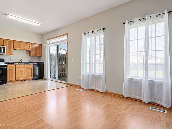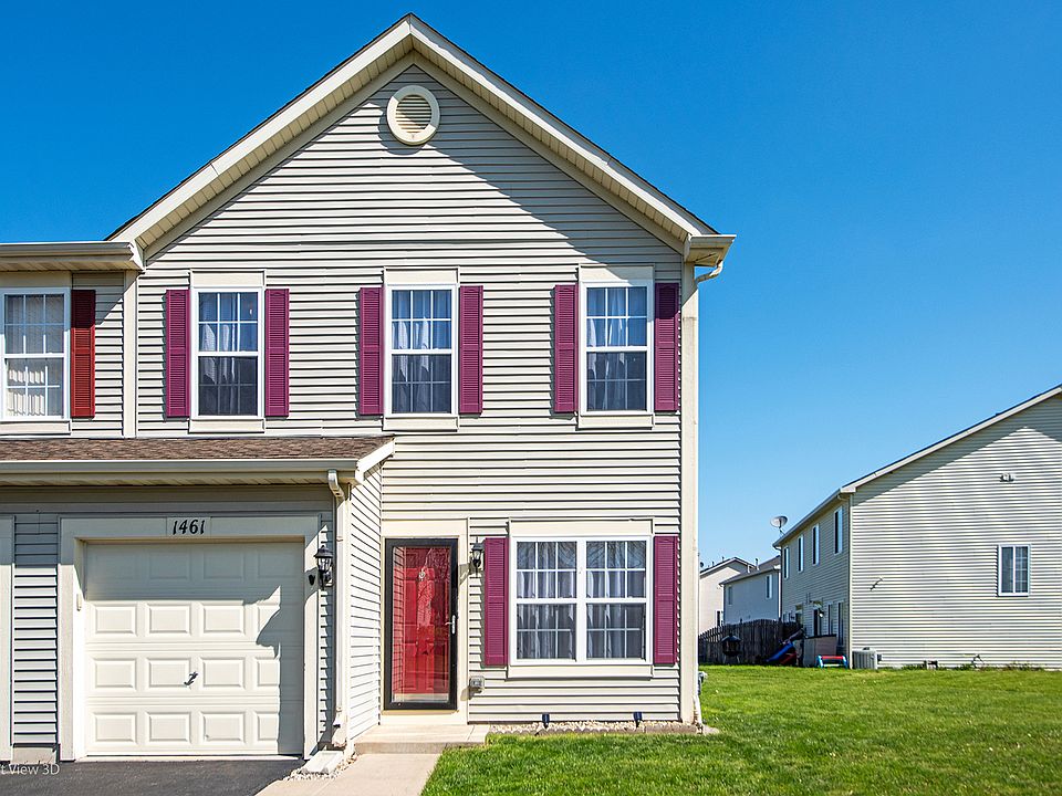 This turnkey home offers a spacious 1,446 square feet of living space, featuring 2 bedrooms + a loft and 1.5 baths, complete with an attached garage, all nestled in an amenities filled subdivision. This delightful duplex in the Lakewood Trails community has undergone many upgrades, making it the perfect move-in-ready option for its new owners. The vibrant clubhouse community has a lot to offer its residents, including a pool, tennis court, volley ball court, and exciting annual neighborhood events. Additionally, the exterior of the home has a newer roof + gutters and was recently professionally power washed. The trim around the front entrance and for all of the front windows has been upgraded to pvc and freshly painted, all of the shutters have been freshly painted and the garage door and garage door trim have been freshly painted as well. Inside, the home has upgraded appliances throughout, including a GE stackable washer/dryer, a Whirlpool over-the-range microwave, a Frigidaire dishwasher and an Insignia Refrigerator-all less than five years old. You'll also find new Trafficmaster carpet in the downstairs closet, the staircase, and throughout the entire second floor. The interior of the home has been freshly painted in Accessible Beige by Benjamin Moore and the entry doors, window sills, handrails, and the staircase trim have been freshly painted as well. The master bathroom has been upgraded with new Lifeproof flooring in Dusk Cherry, a new American Standard Cadet 3 toilet, and new Moen shower hardware. Outside, the front yard is incredibly spacious, perfect for any and all upcoming Summertime activities! The Trane XR HVAC system is only nine years old, and is cleaned and maintained each Spring/Fall, ensuring efficient climate control. The Bradford White water heater is brand new as well. LOW QUARTERLY HOA. Conveniently located near I-80 and I-355. Don't miss out on this fantastic opportunity!