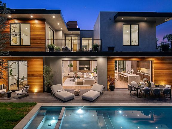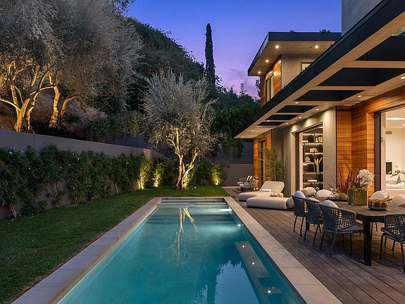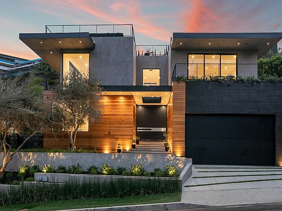 Designed by NYB Designs & built by PERS Development, this ultra-Private Organic Contemporary, clad with fine Cedar Wood and concrete form board, is surrounded by dozens of 50-yr olive trees w/ epic city views on a vast, ultra large lot on famed Rising Glen. Brand new construction, sparing no detail. Reminiscent of the Soho House, with incredible scale, and flooded with an abundance of natural light. You are welcomed to a double height massive custom pivot door, unto gracious foyer. Disappearing walls of glass to grassy backyard, pool area, with Full BBQ/ Outdoor Kitchen and smart wiring throughout. Spanning over 5,700 FT above ground, 4 sumptuous bedrooms, all with en suite baths. 1,500 SQFT Master wing set against staggering city skyline. Massive rooftop deck, with wrap around 360- degree views. Enormous garage, with ample space for lifts, and additional off street parking. An architectural feat long in the making, ready for the most discerning buyer.
