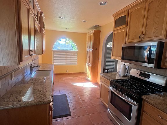 Enjoy a modern kitchen with updated appliances. Equipped with central heating and air. The home boasts a large back patio with a built in BBQ, burner and sink. Perfect for entertaining or relaxing outdoors. From the street an electric gate accesses the detached 2 car garage deep enough for 2 vehicles and storage.