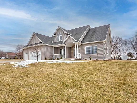 Private views from this beautiful “Parade of Homes” custom-built home nestled in Stone Ridge Estates located just south of Riverside. This home features three large bedrooms and two non-conforming lower level bedrooms. This spacious 1 ½ story home sits on 1 ¼ acres backing to a farm field. An inviting formal entry opens into the spacious great room with soaring high ceilings, a cozy gas fireplace, and custom-built bookcases. Elegant wide white columns between the great room and kitchen area with beautiful arched openings. Spacious eat-in kitchen with hardwood floors, tons of cabinet storage including a work island, and all appliances staying. 1st floor office or formal dining room with a beautiful detailed coffered ceiling. Huge luxurious 1st floor primary suite featuring a detailed box ceiling, walk-in closet, a cozy whirlpool tub with a nice window to take in the private views of the backyard, and a separate shower. Beautiful open staircase with modern spindles leading to the upper level which features two generous sized bedrooms with detailed ceilings and a 2nd full bathroom. Great lower level featuring a cozy family room wired for sound with a 2nd fireplace with custom built-ins for storage. Two large non-conforming bedrooms, both with deep closets. 3rd full bathroom and a huge storage room that could be finished for additional living space. Solid doors throughout. 1st floor laundry.