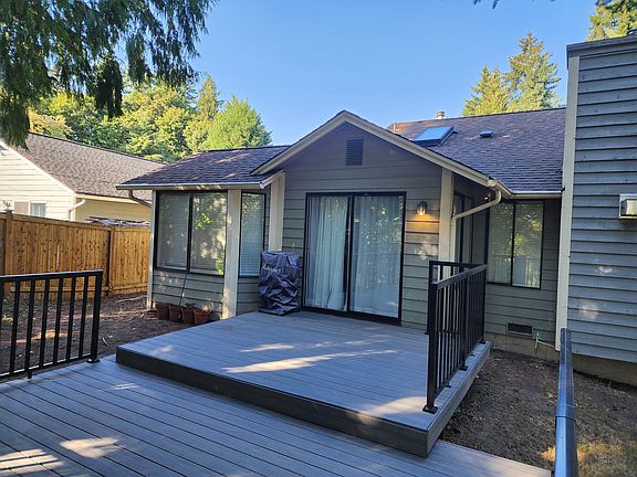Recenthly remodeled 3 bedroom house with new luxury vinyl foors and working appliances. Spacious two car attached garage. A great backyard with beautiful greenbelt that provide privacy. A new composite deck with modern metal railings. This property is located on a private drive lane; only shared with a single neighbor. It is located 10 minutes away from 405 highway access, transit park and ride, shopping centers, dinning, and other local attractions. The house is modern, clean and move in ready. Renter is responsible for paying for all utilities. Last month's rent due at signing. No smoking or large pets allowed (no pet larger then 40 pounds will be allowed). Small outdoor shed is not part of the rent. Twelve month lease required. Landlord is responsible for yard maintenance.