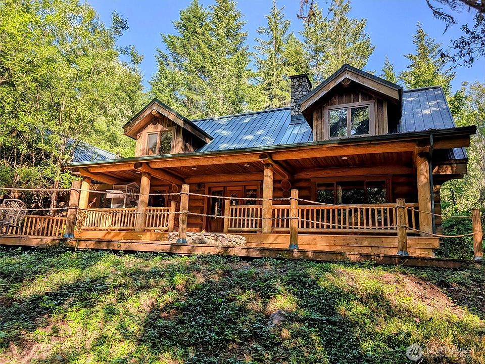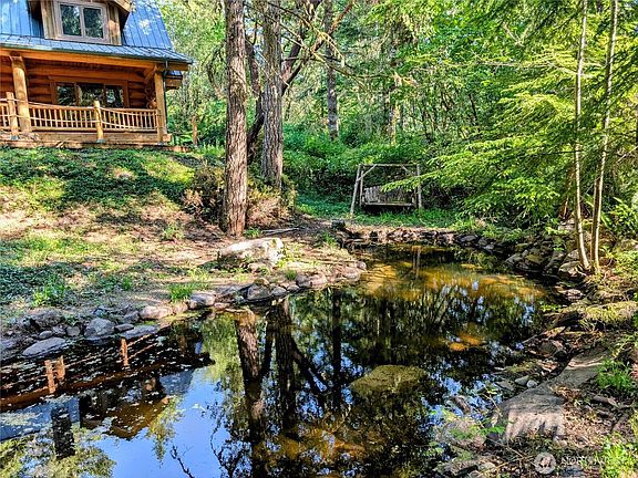 This gorgeous 2,000+ square foot log home has been finely crafted with entertaining in mind. Large decks with fire pit over looking your very own pond and beautiful, private just shy 5 acre property with giant shop. The roof top deck has a hot tub right next to the converted attic above the 2 car garage. The interior features vaulted ceilings, exposed log beam construction, in-floor heating, hardwood floors and 2 gas fireplaces for those winter evenings. Kitchen has custom cabinets and granite counters right along side of an Elmira stove and appliances with antique finishes. Located very close to salt and fresh water activities and just in between Port Orchard or Gig Harbor shopping.