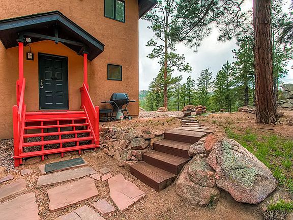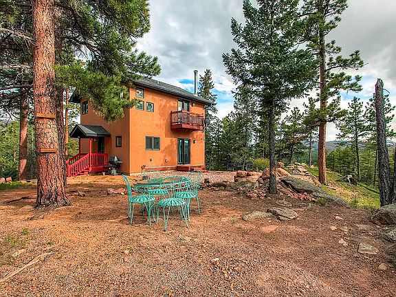 This 1 bed, 1 bath, home on 3 wooded acres with a private lake is in immaculate condition and offers excellent views of the surrounding mountains. The entire home feels quite large and the windows bring in lots of natural light and highlight the properties views of the wilderness. The owners suite is very spacious and has an impressive view of Pikes Peak. The Juliet balcony looks out at Thunder Butte, Bell Rock, and Pine Lake. The main level living room is large, open, and bright and It walks out to a patio area/fie pit. Westcreek Lakes is a Sportsman's Paradise served by a private lake called Pine Lake that is full of Brown Trout and Rainbow Trout. It is one of the few private lakes that allows members to swim and recreate in and on the water. There are beaver dams and ponds throughout the area, and wildlife are everywhere. No need to trailer your OHV's, as you can ride from the property to the Rampart Range Trailhead. This property has plenty of recreational areas surrounding it: Gold Medal Waters for fishing, National Forest for Hunting, OHV trails, World Class Jeep Trails, World Famous Climbing at Turkey Rock and Sheep's Nose, Lost Creek Wilderness for horseback riding & Buffalo Creek for mountain biking all are within either riding distance or a 30 minute drive. Make it your permanent dream home or your weekend retreat as Colorado Springs and Denver are both just over an hour's drive.