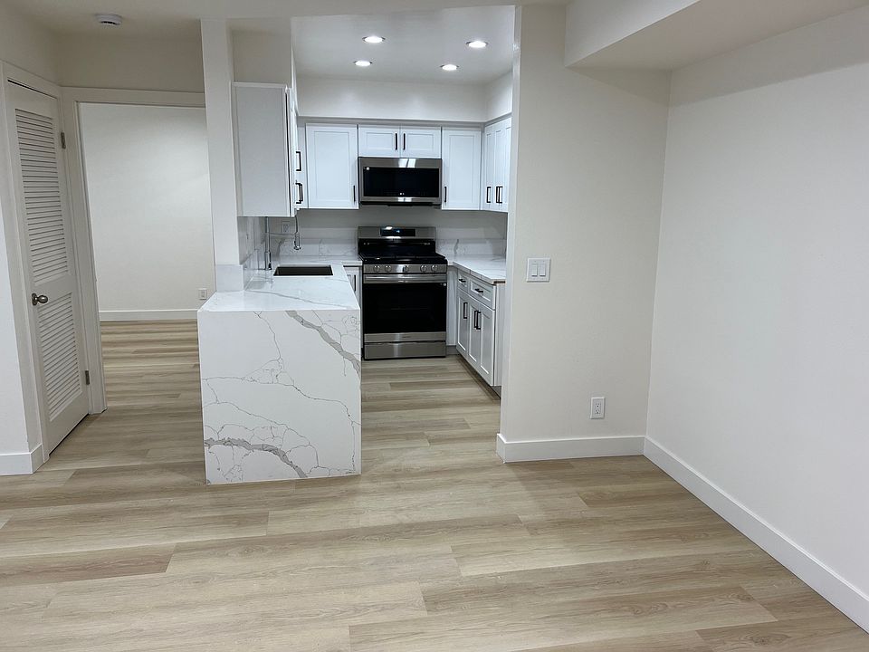Fully remodeled 2 Bed, 2 Bath Condo located on the first level of the building. Elevator available for disable access or convenience. Washer/Dryer Hook ups in unit Includes Stove, Refrigerator, Microwave and Dishwasher 2 parking spaces with it's private entry gate Central Air and Heat Water and Trash Included Owner pays for Water and Trash. Tenant is responsible for gas and electric.