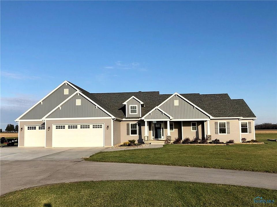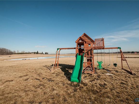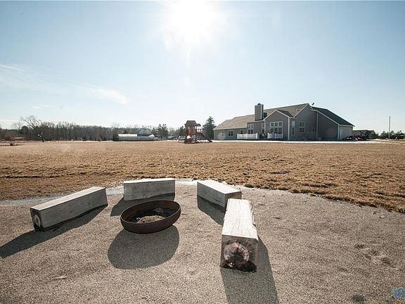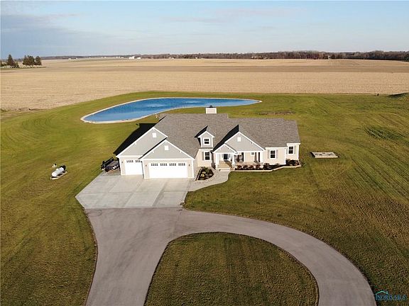 High end top to bottom! Custom-built ranch featuring an open floor plan, solid oak floors, quartz counters, tiled showers, custom built-ins, fireplace, geothermal heating/cooling & back-up generator. The finished basement with egress window is already plumbed for a kitchen! Enjoy the private, manicured 8 acres with pond & sand beach. All just a short commute to Toledo, Perrysburg, BG or Findlay!