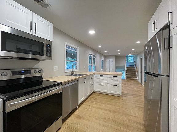 Peaceful, private, and newly updated this beautiful 3-bedroom, 2-bath apartment offers quiet living surrounded by nature. Electricity and gas included in the rent. Enjoy a brand-new kitchen with modern appliances, in-unit washer and dryer, and a unique three-level layout with wooded views from every room. The three-level layout provides both openness and separation ideal for those who work from home or value defined spaces.