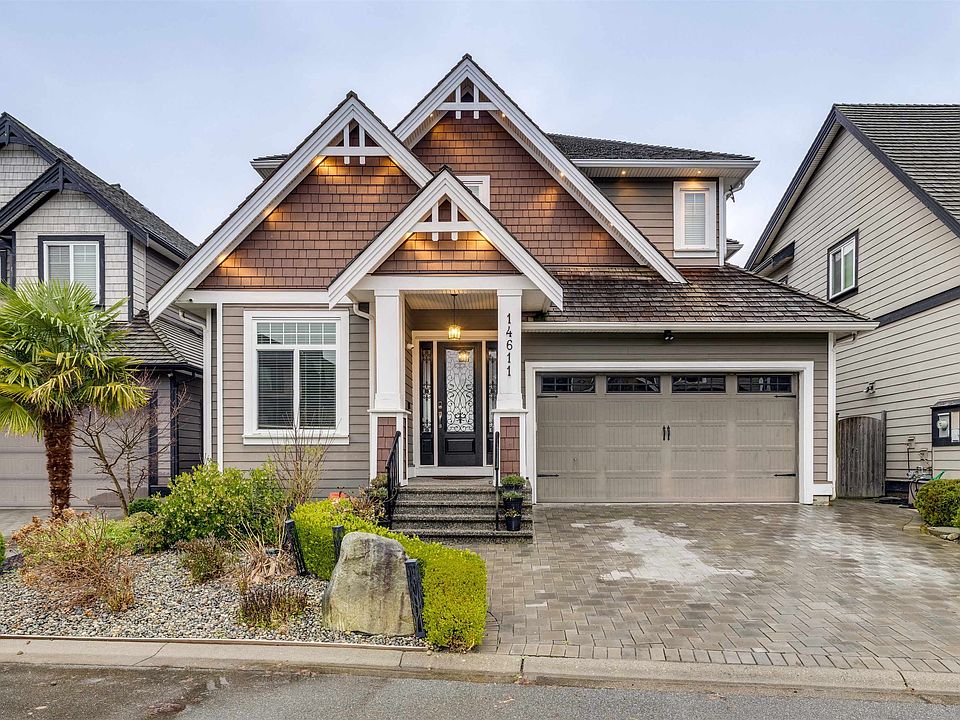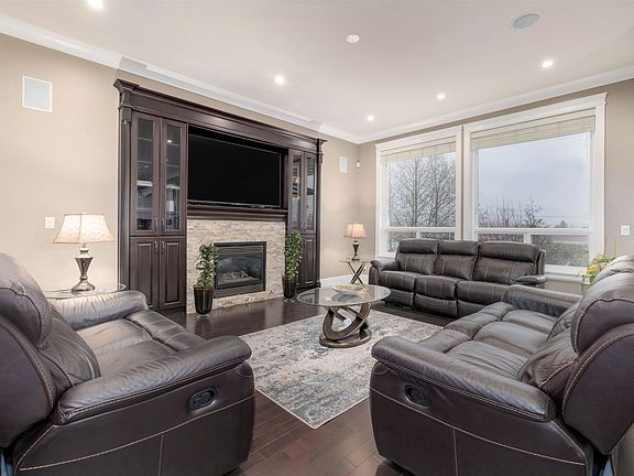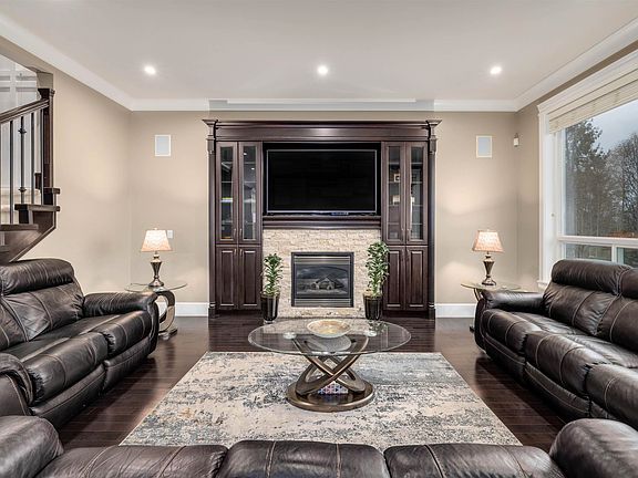 Anderson Walk! Finished and equipped to the highest standards, this stunning residence backs onto the Nicomekl River. The great room opens to a spacious island kitchen featuring antique white cabinets with soft-close doors and drawers, granite countertops, and high-end stainless steel appliances. Solid hardwood floors flow throughout the main level, complemented by premium carpet in all bedrooms. A feature wall in the great room showcases built-in cabinetry and a stone-finished fireplace. A den/office is conveniently located off the foyer. The luxurious 5-piece primary BDRM includes a jacuzzi tub and steam shower. The fully finished basement offers a large recreation room and a separate theatre room. Additional highlights include central A/C, built-in vacuum, and a security/alarm system.