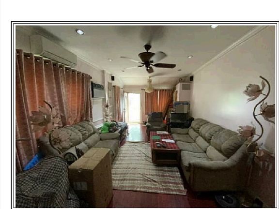 On the first floor, there is a large living room, dining room, kitchen, washing machine and dryer, half a toilet. On the second floor, there are three rooms and a full toilet. In addition, there are front yard, backyard and driveway.