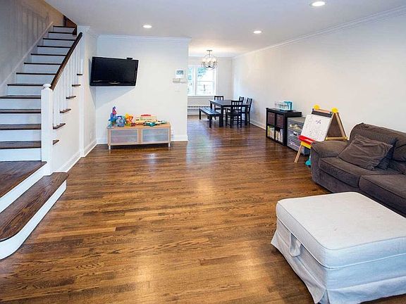 Beautiful Hardwood floors. Refinished 2017. Double pane windows. 5 zone heating. Private driveway with garage. Private backyard - Professionally landscaped in 2017 featuring trees and flowering plants. More space for a vegetable garden or pool. Open concept, excellent sightlines from each area. 9 Foot ceilings with new crown and base molding. Recessed lighting in kitchen and living room. 2017 Gut renovated kitchen, features stainless steel appliances: LG refrigerator and stove, Bosch dishwasher, Kenmore washer and dryer, RO water filtration system, white quartz countertops, white shaker soft close cabinets and drawers. 15,000 BTU Friedrich AC.