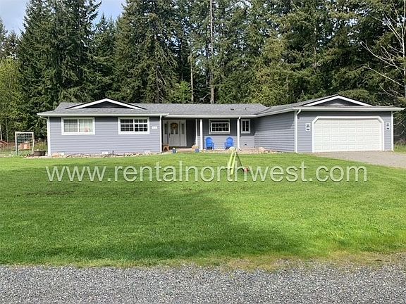 This home is 1,855 sq ft, 3 bd/2bth home sits back from the road down a long drive, not visible from the street. Set on 5 ACRES (mostly wooded). Sorry, this property has no fencing or barn so it is not set up for livestock (maybe a few goats or chickens). Live in the country but just 10 min from Walmart! Heat pump, laundry room with w/d hookups, two family/living areas, master bedroom features ensuite bathroom and large walk-in closet, hard flooring (no carpet) throughout house, pets are allowed with an additional $500 deposit and $25/mo pet rent (please note: there is no fenced yard). Please do not drive down the driveway without an appointment. We respect our current tenant's privacy. All applicants must be non-smokers. Absolutely NO SMOKING of any kind will be allowed anywhere on the property. Easy commute to JBLM. There is a very nice long term tenant who lives in the apartment above the shop on the property. Lessee is responsible for all utilities.